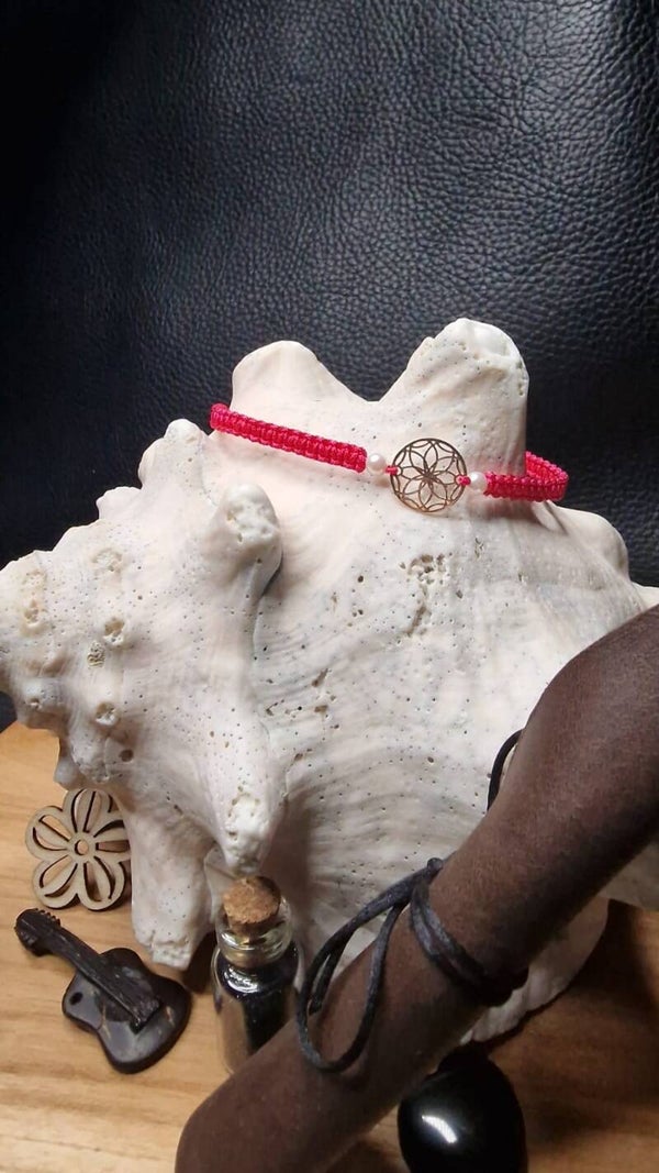 - Constitué d'une fleur de vie en laiton doré de 2cm et de petites perles de nacre de 4mm.
