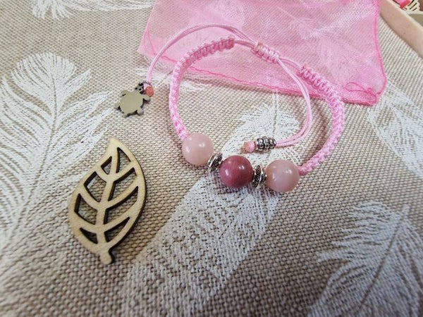 - Constitué d'une perle centrale de 08mm en Rhodonite, de perles en Opale rose et en métal argenté,