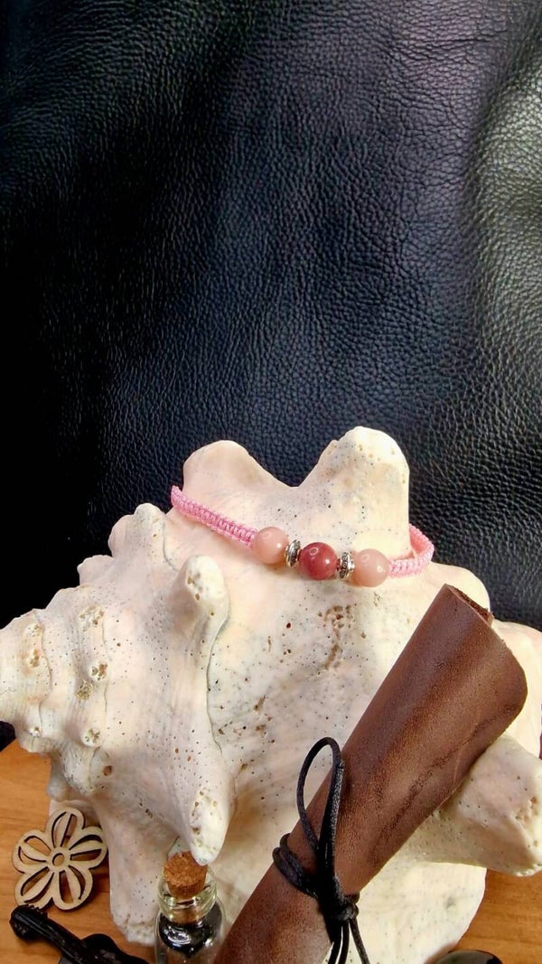 - Bracelet entièrement fait main, ajustable, en nylon rose très résistant,