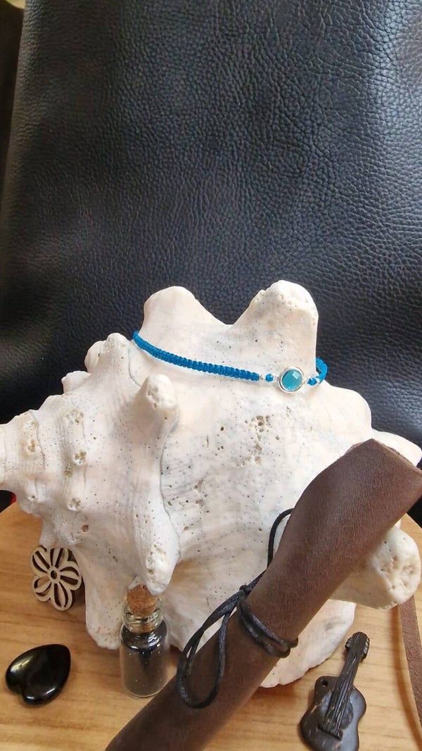 - Bracelet entièrement fait main, ajustable, en polyester ciré linhasita ton bleu, très résistant,