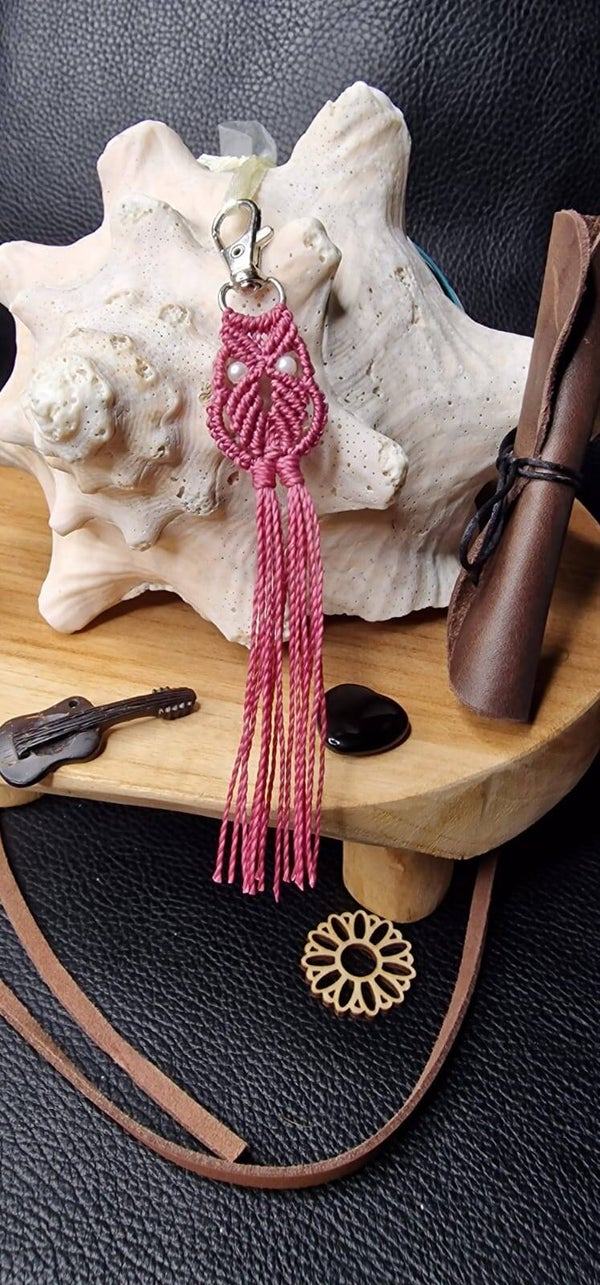 - Porte-clé tissé à la main en micro-macramé,